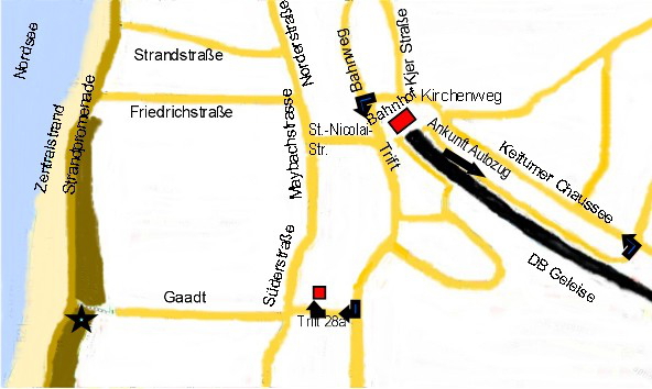 Nach Zugankunft Richtung Busbahnhof gehen und dem Trift